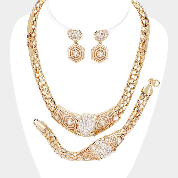 Rhinestone Pave Snake Chain Necklace 3-Pieces Jewelry Set