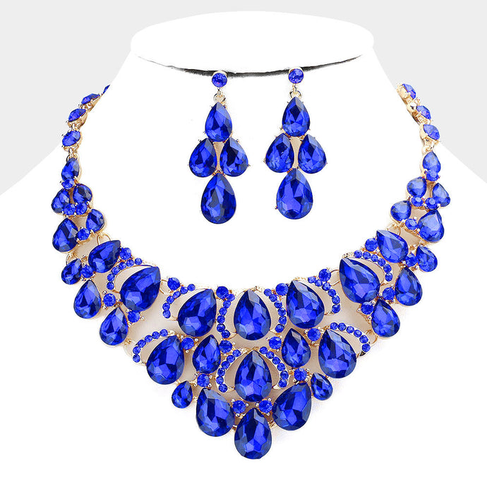 Layered Metal Chain Oval Glass Stone Necklace Set