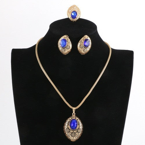 Gold Plated Metal Blue Crystal Necklace Earring Set