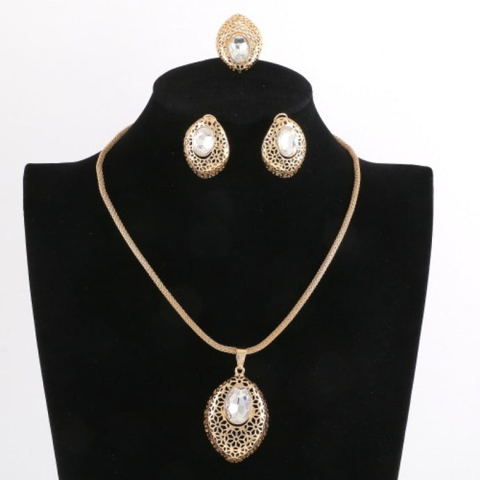 Gold Plated Metal Clear Crystal Necklace Earring Set