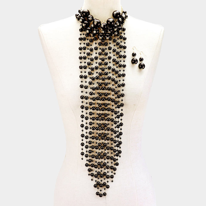 Elegant Teardrop Stone Cluster Evening Necklace- Peach